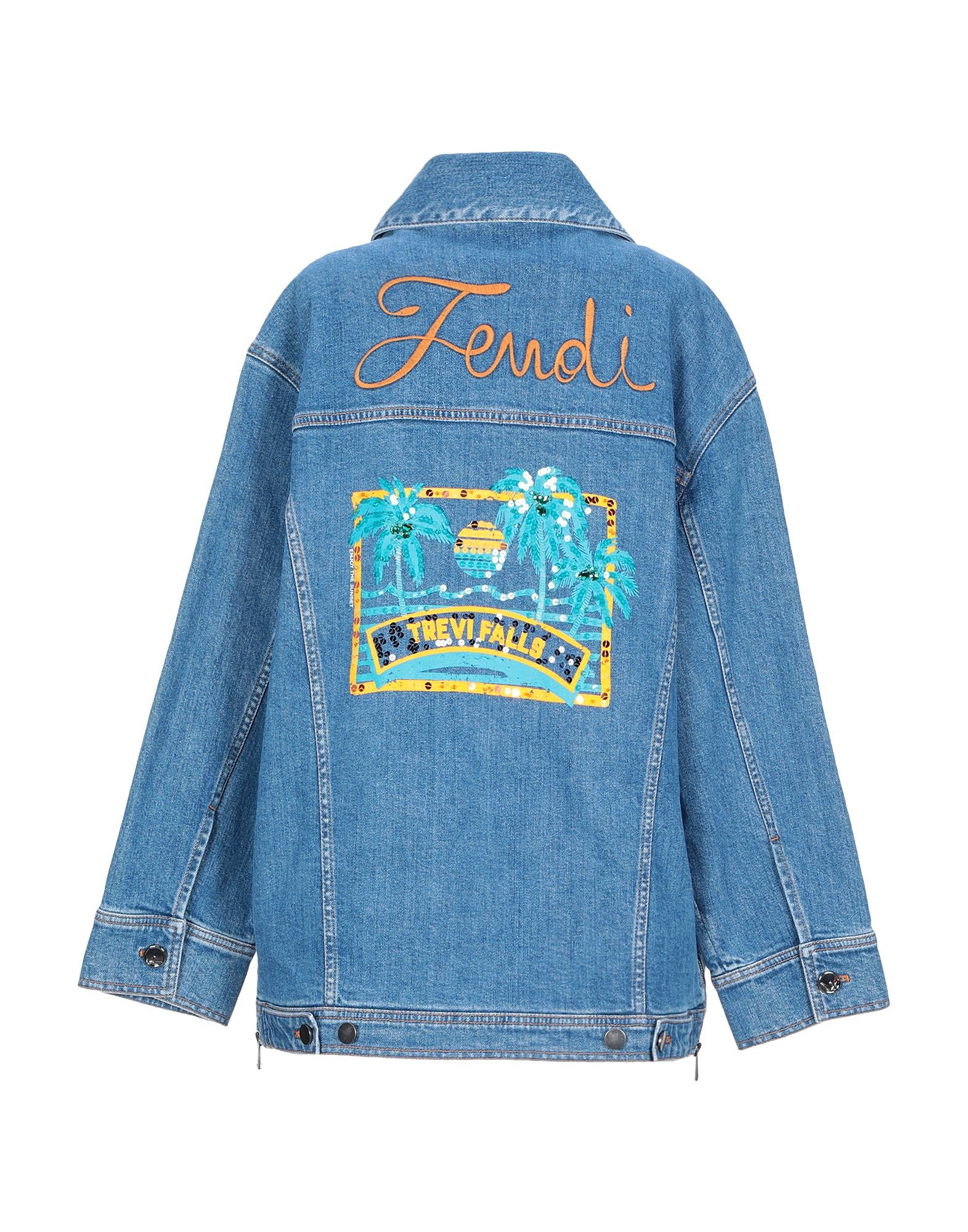 denim, geborduurde details, pailletten, effen kleur, medium wassing, lange mouwen, klassieke halslijn, manchetten met knopen, voorsluiting, knoopsluiting, meerdere zakken, stretch, klein formaat.