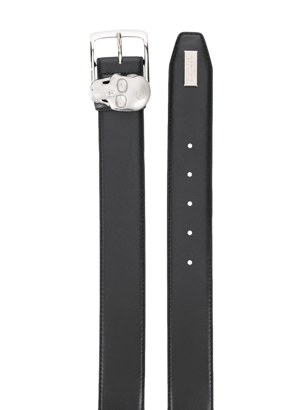 Riem met doodskop van Philipp Plein uitgevoerd in leder voorzien van zilverkleurige gespsluiting en verstelbare pasvorm.