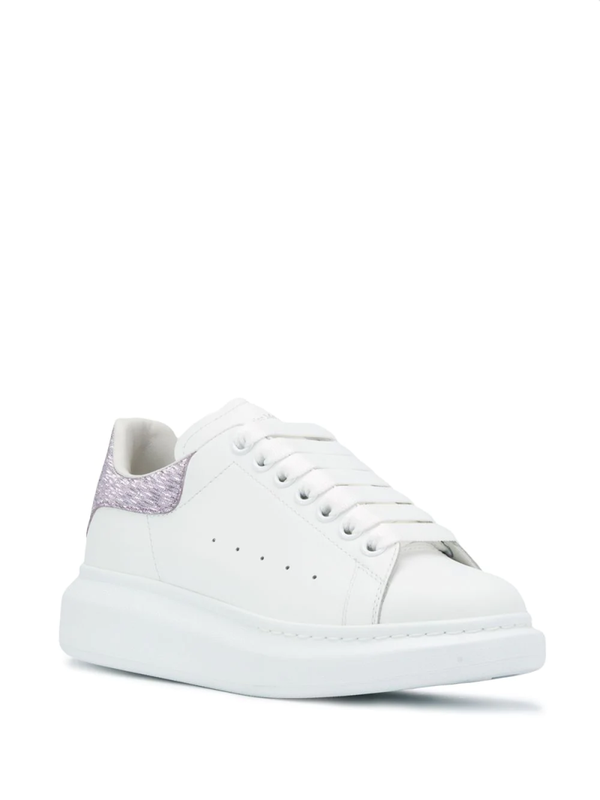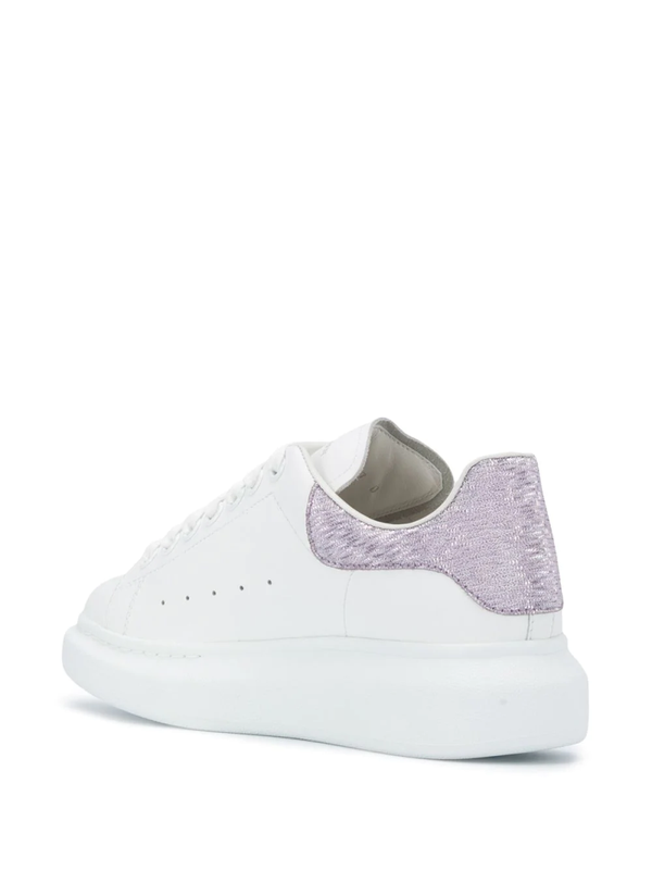 Contrasterende hak, logo reliëf op de tong, vetersluiting aan voorkant, ronde neus en oversized rubberen zool. Materiaal: leder.