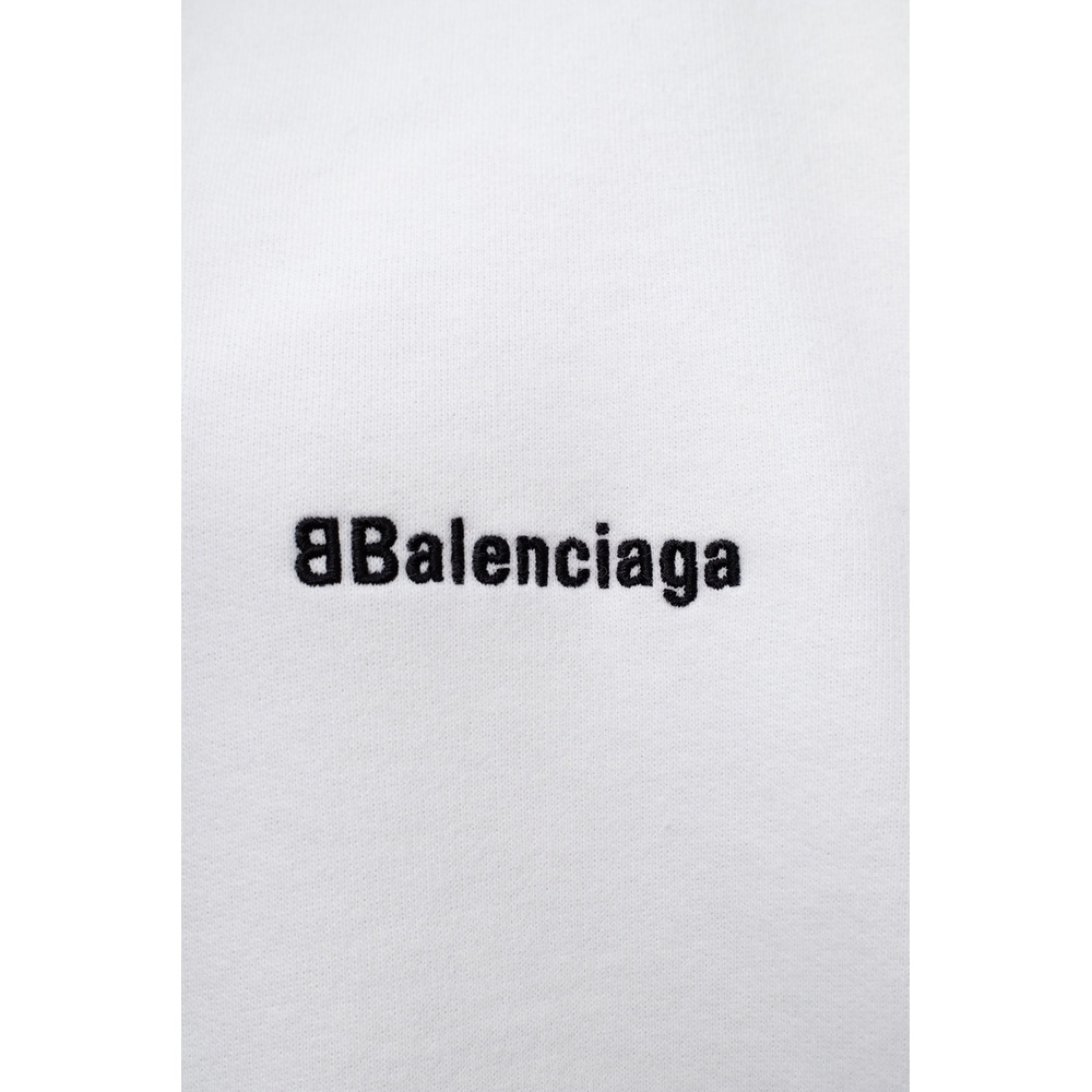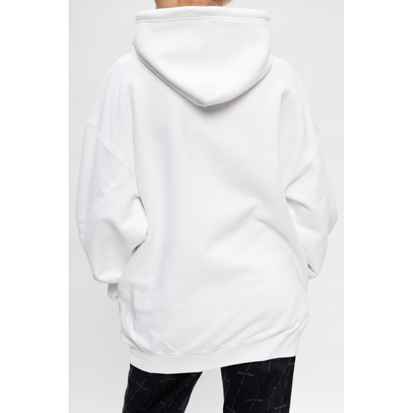 Wit sweatshirt met capuchon met trekkoord van Balenciaga. Deze katoenen hoodie is geborduurd met het logo van het merk in het zwart en is compleet met een kangoeroezak en geribbelde afwerking aan de zoom en manchetten.
