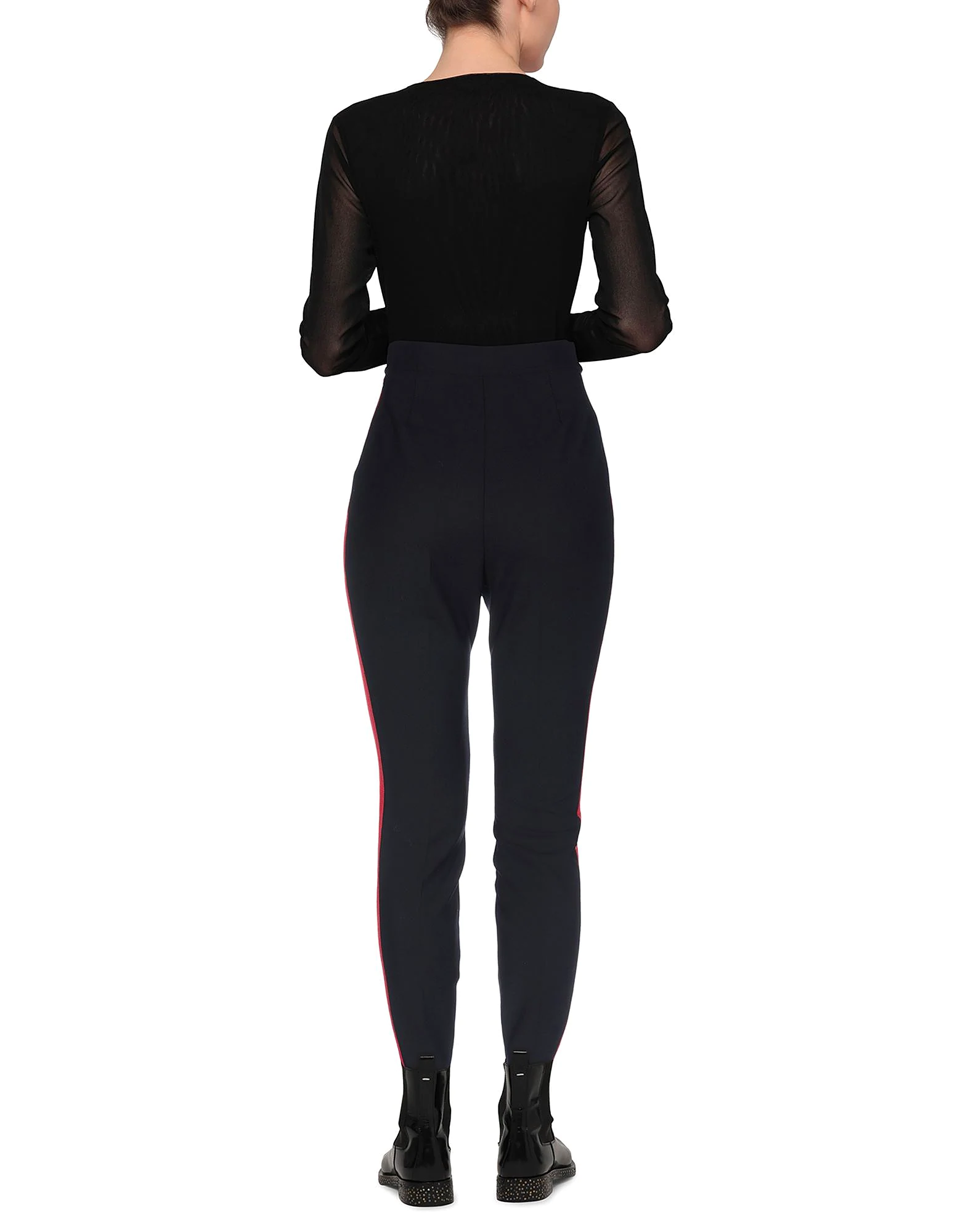 cool wool, effen, zijnaad strepen, halfhoge taille, normale pasvorm, rechte pijp, ritssluiting, ritssluitingen in de zoom, stretch.