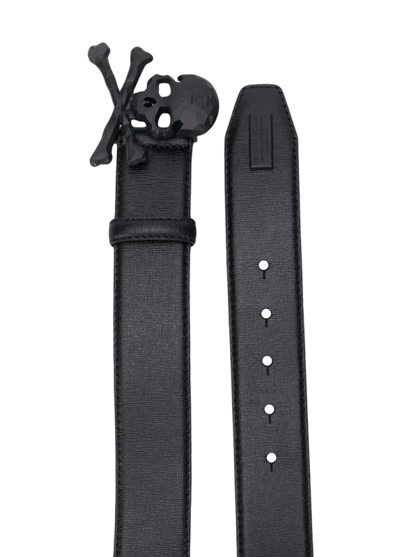 Riem met doodskopplakkaat van Philipp Plein uitgevoerd in leder voorzien van verstelbare pasvorm en karakteristieke doodskop hanger.