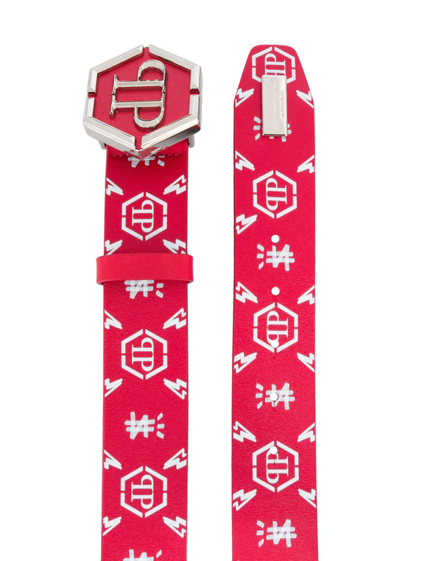 Monogramprint, gespsluiting met logo, zilverkleurig logo , verstelbare pasvorm en perforatiedetails.