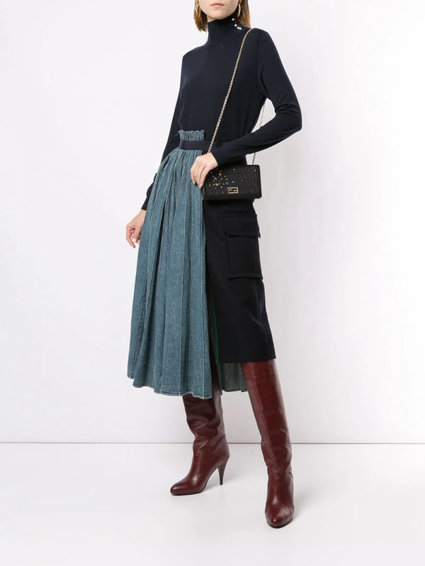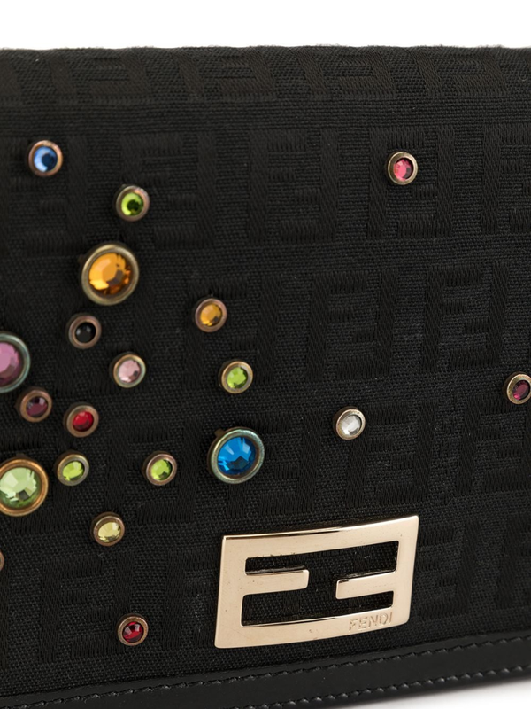 Handtas verfraaid met zucca patroon van Fendi Pre-Owned voorzien van omgeslagen rand met kliksluiting, kettingbandje, versiering gemaakt van verschillende halfedelstenen, meerdere kaartgleuven binnenzijde en goudkleurig logo plakkaat. Let op: pre-owned items zijn niet nieuw en kunnen eventuele beschadigingen bevatten.. Dit artikel wordt geleverd met een stofzak.