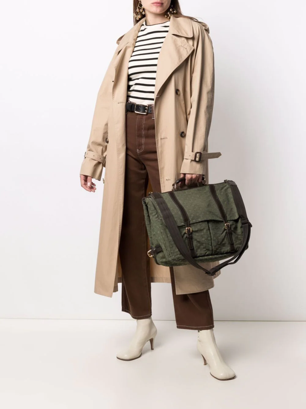 Gespsluiting aan zijkant , omslag, band- en gespsluiting, één plat handvat, afneembare en verstelbare schouderband, achterzak met ritssluiting, twee opgestikte voorzakken, logopatch aan de binnenkant , volledige voering, goudkleurig materiaal en rechthoekige vorm. Houd er rekening mee dat dit artikel niet nieuw is en het zijn verhaal vertelt aan de hand van kleine imperfecties. Geef dit artikel een tweede leven en maak een POSITIVELY CONCIOUS keuze voor uzelf en de planeet.