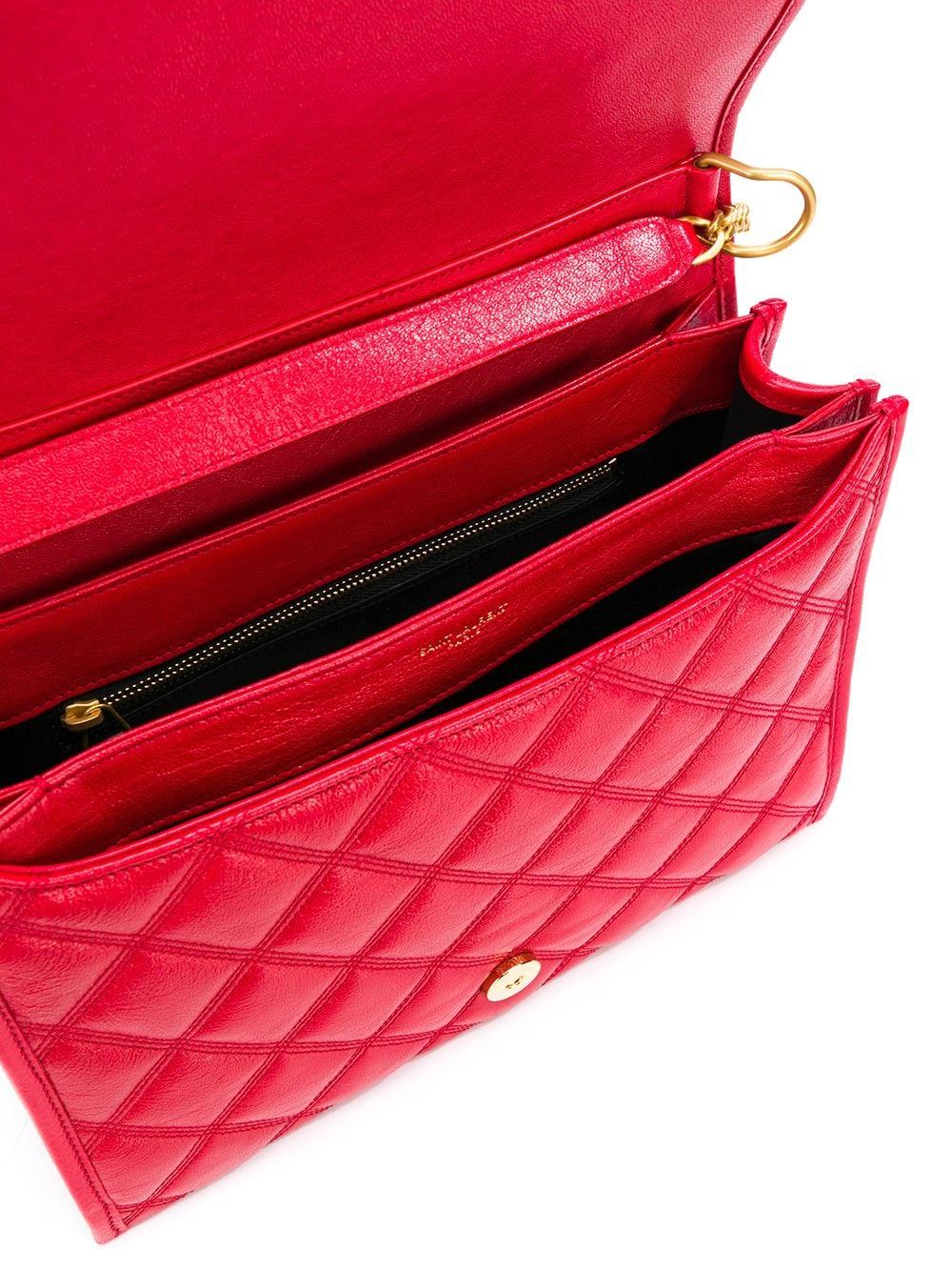 Gevoerde schoudertas van Saint Laurent uitgevoerd in leder voorzien van gestructureerd design, goudkleurige fitting en kettingschouderriemen.