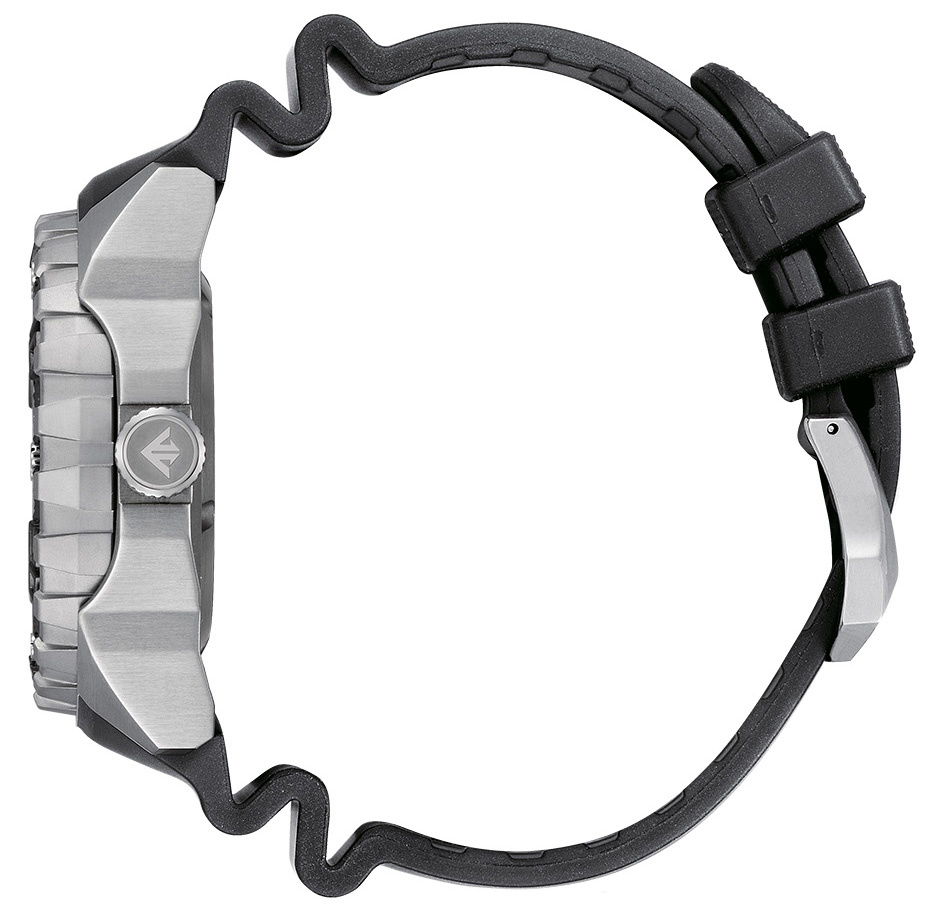 De kast van de NB6004-08E is gemaakt van Super Titanium TIC, het bandje van rubber waardoor dit model zeer licht is in gewicht. Dat verneem je zodra je het horloge om je pols plaatst, het zit lekker comfortabel. Groot voordeel van titanium is dat dit materiaal veel harder is dan staal en bovendien ook anti-allergisch.